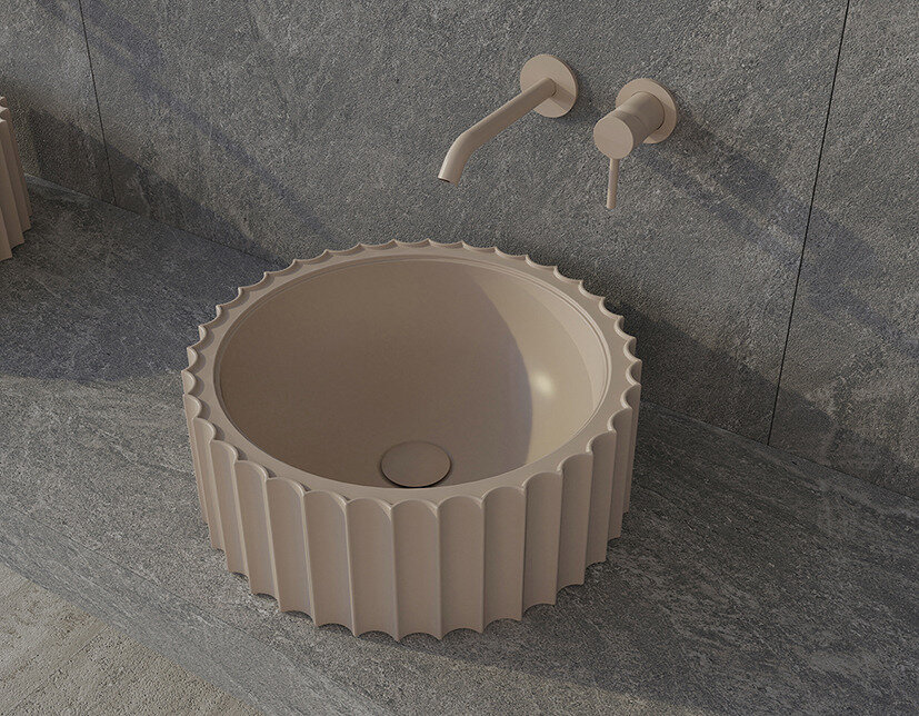 Characterized by classic, rounded forms, this line gets inspiration from the holy water font of 18th century baroque churches.
