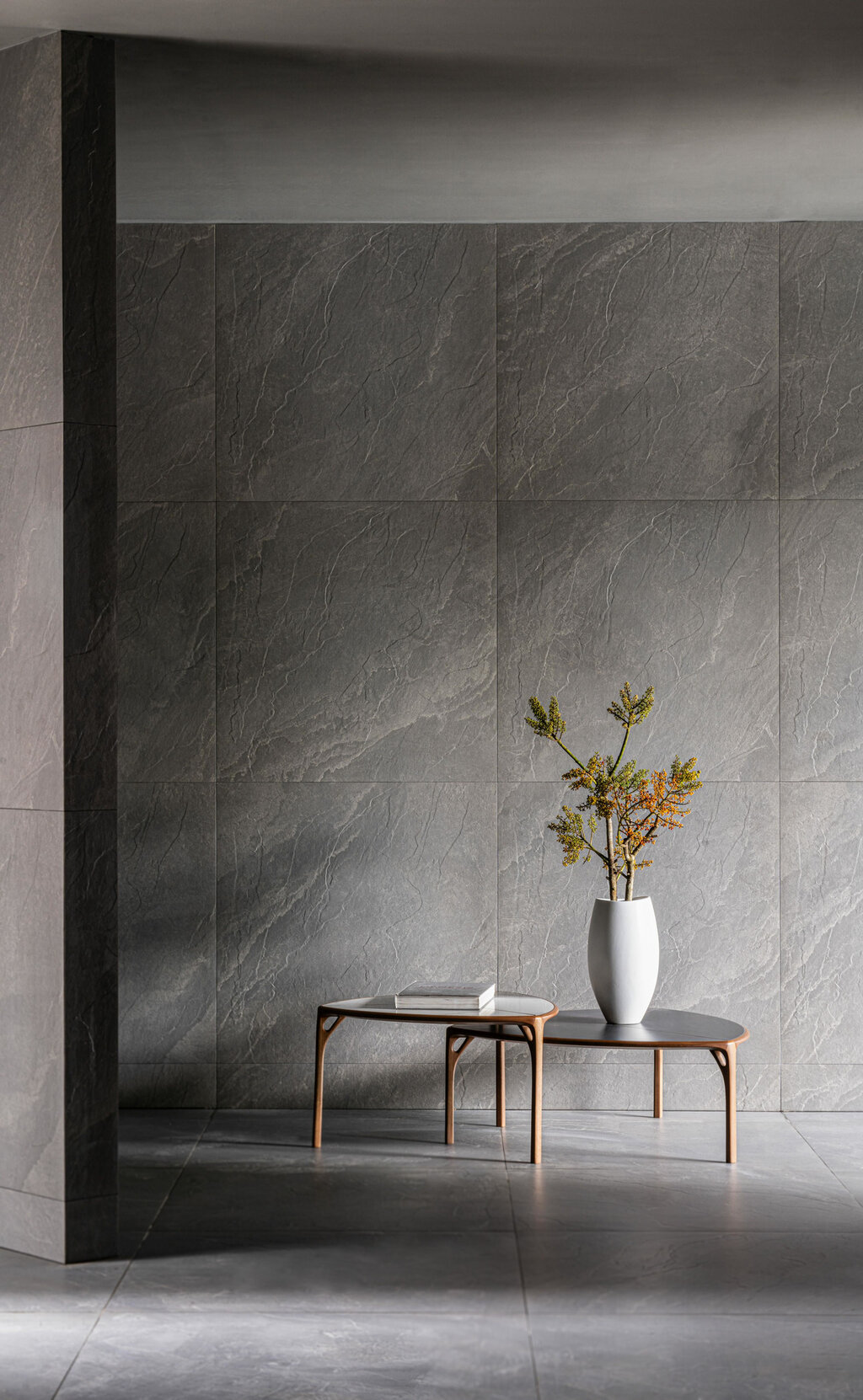 Inspired by slate, Itá is a soft and imposing series. Its surface features a reinterpretation of Brazilian stones in large tile formats. The connection with nature enhances the perception of the unique veins and characteristics of the raw materials, which are now reproduced with new tones, bringing more naturalness and elegance. It has sensory nuances – a true invitation to touch, in addition to bringing exclusive shades and a matte finish.