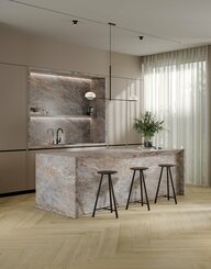Assicurandosi un posto nelle cucine moderne, il piano di lavoro in porcellana T-One è progettato per aumentare il tuo piacere in cucina con la sua struttura resistente, superficie igienica e aspetto estetico. Realizzato con lastre di porcellana Kalesinterflex dalle eccellenti prestazioni che rompono gli schemi nell'architettura, il piano di lavoro in porcellana T-One è dotato di caratteristiche in grado di soddisfare tutte le tue aspettative. Il piano di lavoro in porcellana T-One di dimensioni 160x320 cm è composto da lastre di porcellana con dimensioni di 160x320 cm e uno spessore di 12 mm.