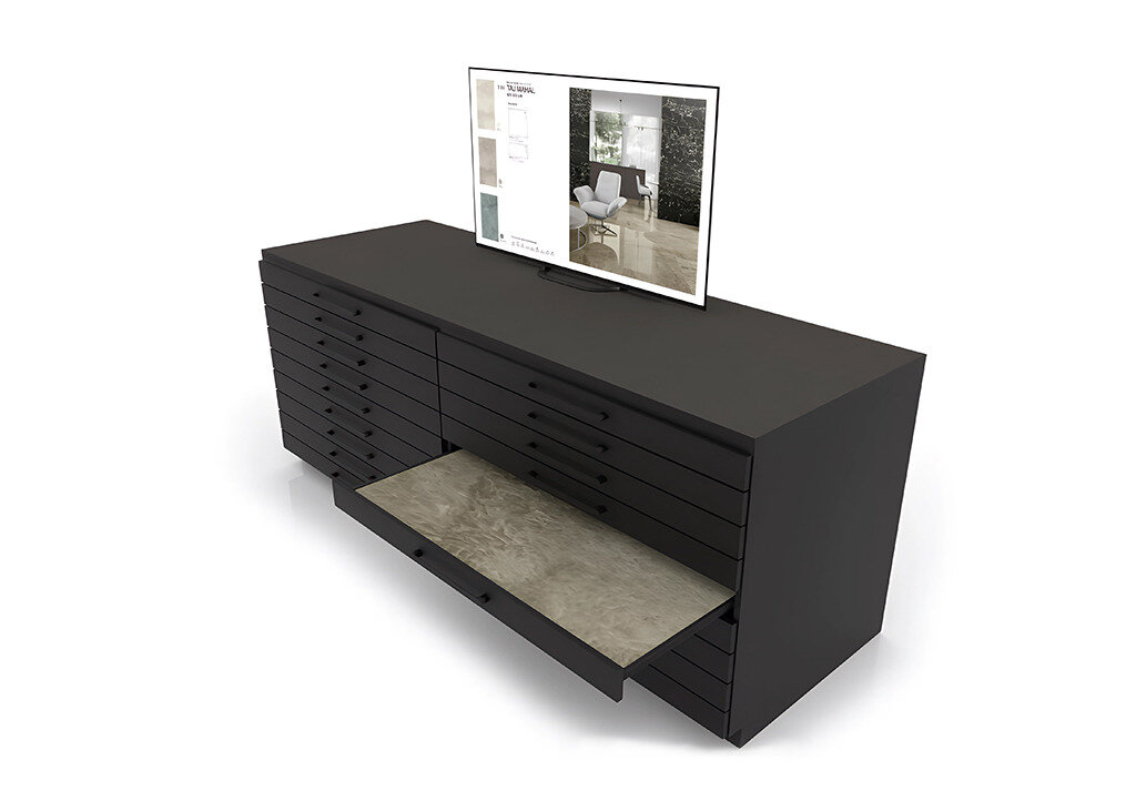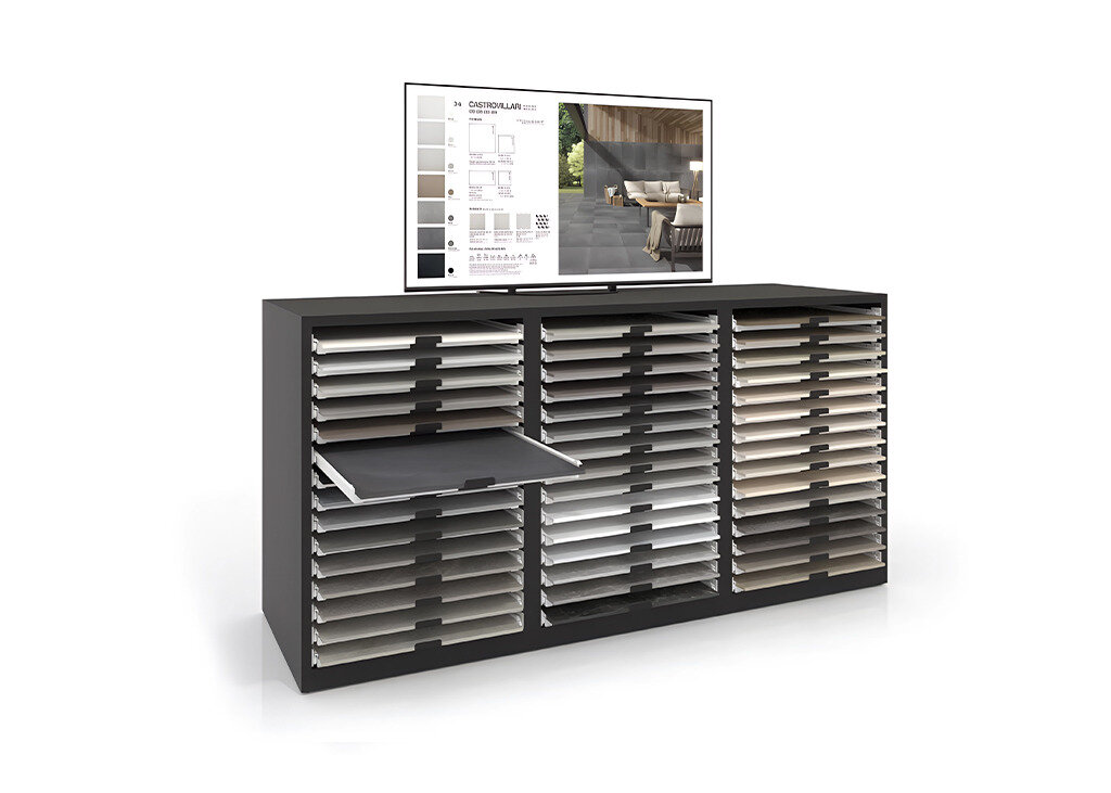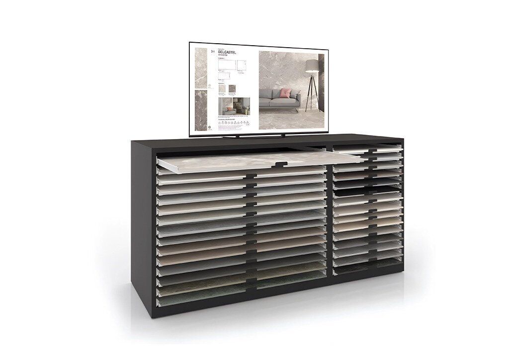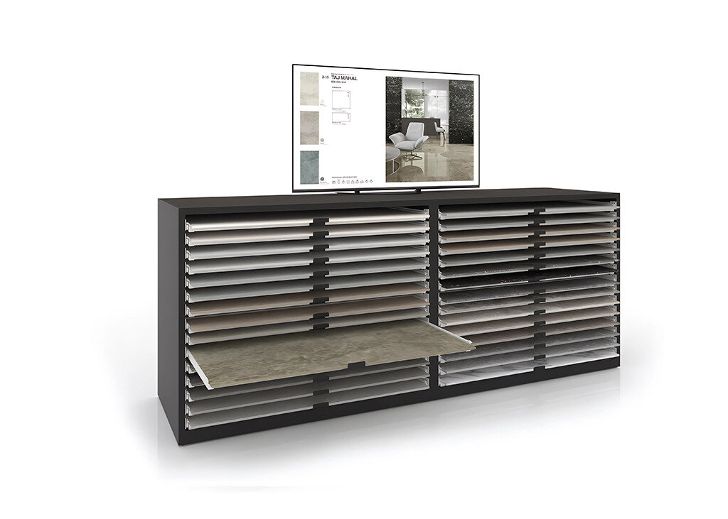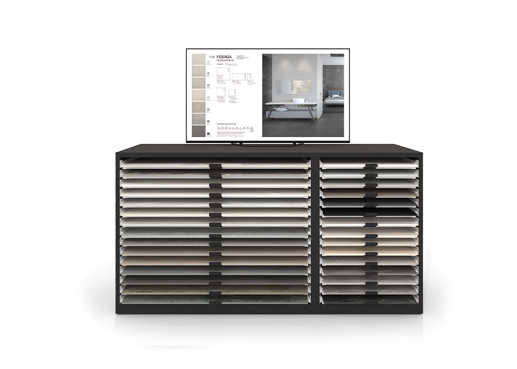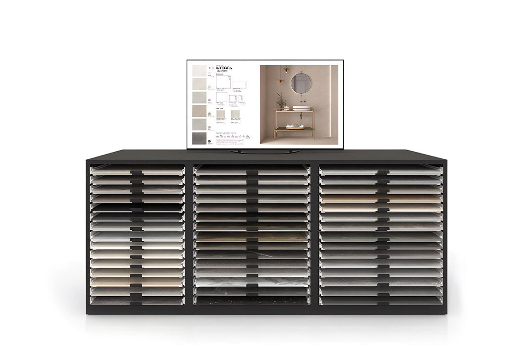 I.RIS è un sistema intelligente e digitale che consente ai vostri clienti di visualizzare l’ambiente finale a partire dal campione fisico dell’espositore per piastrelle.