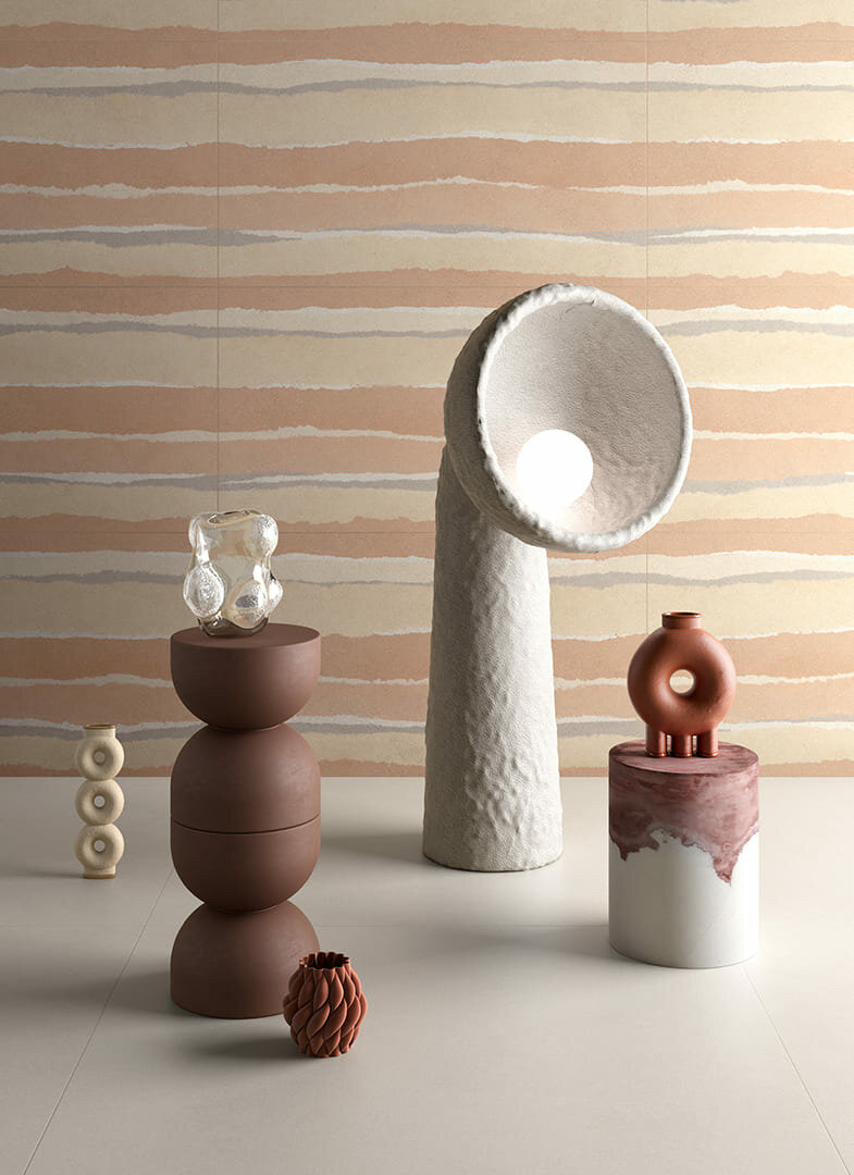 Una materia naturale, essenziale e calda. Un’armonia di pace, equilibrio si diffonde negli spazi grazie a queste terre pressate e ad una texture leggera, materica per lasciare spazio ai colori naturali. Nuance pastellate accompagnano marmi, legni, brick, e maioliche in una scena personale, intima.