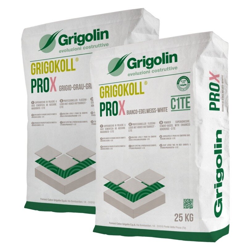Adesivo bianco e grigio per la posa di rivestimenti ceramici assorbenti su supporti assorbenti. GRIGOKOLL PROX è un prodotto tixotropico con ottima lavorabilità e tempo aperto allungato, può essere utilizzato sia in interno che in esterno ed è indicato per applicazioni sia a parete che a pavimento.