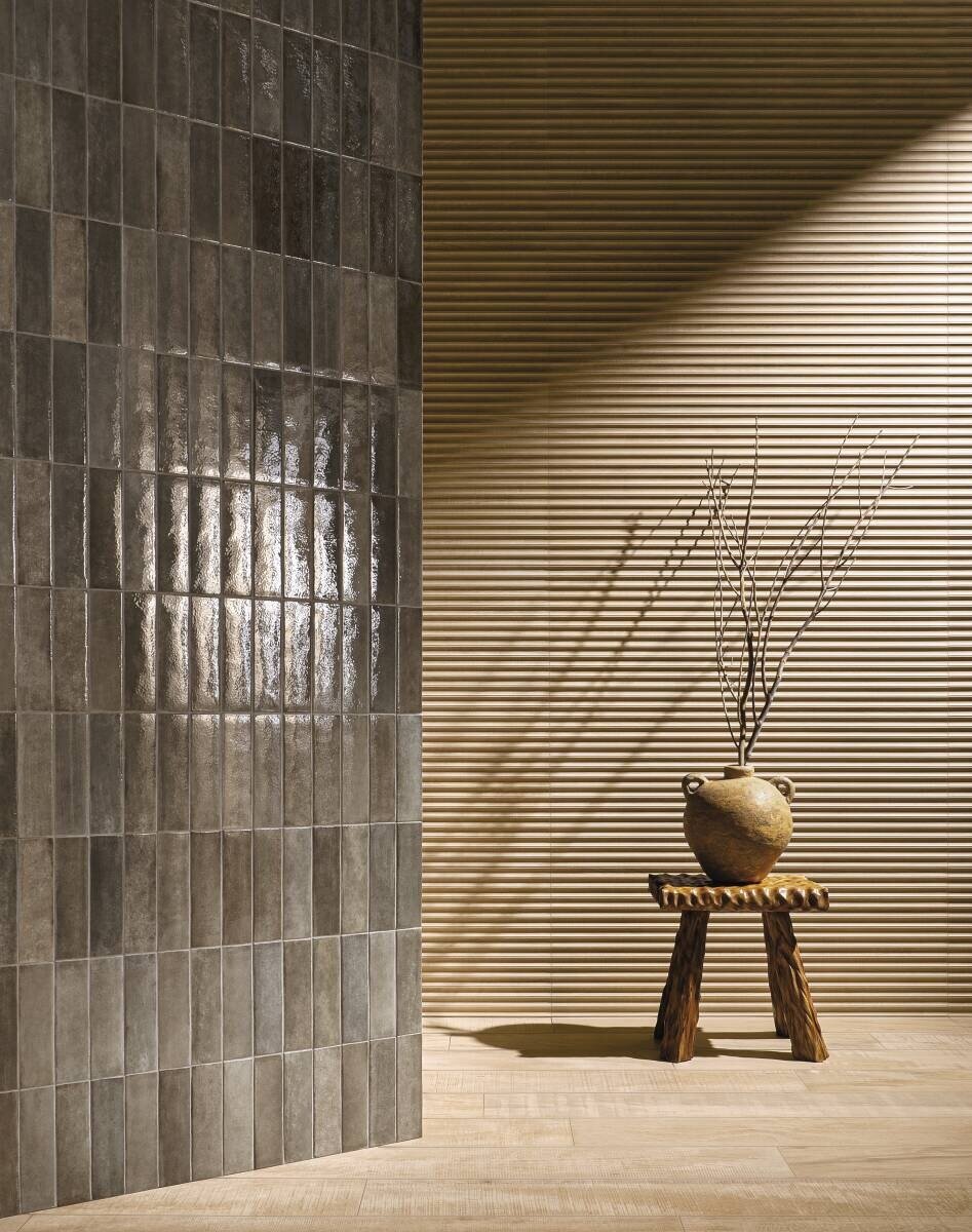 Artfact ha reso eterne le scoperte dell'artigiano in una collezione di rivestimenti lunghi e spessi, con bordi organici e