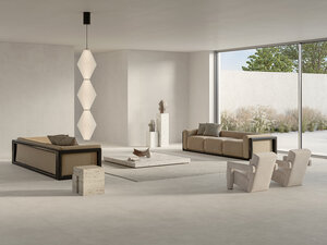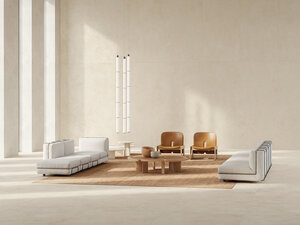 La collezione disegnata da Elisa Ossino enfatizza texture e variazioni tonali in un dialogo continuo tra materiali e spazi, luce e forme.