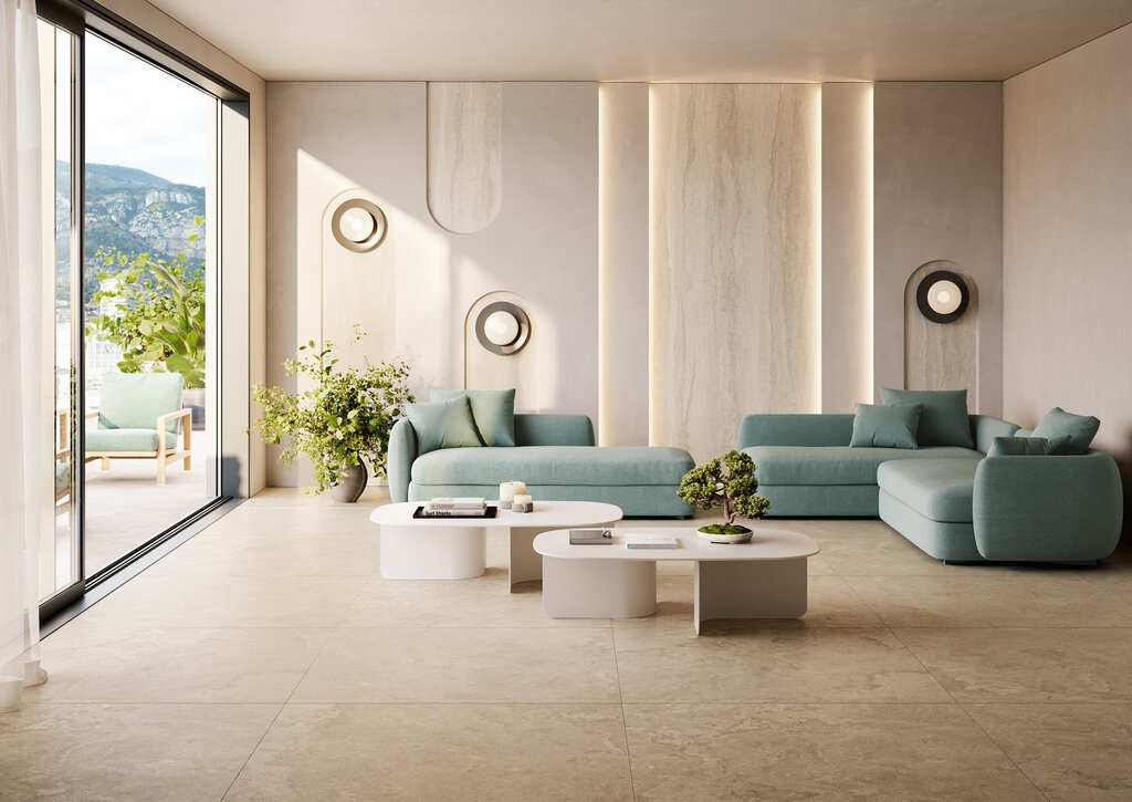 Genesis reinterpreta l’ancestrale pietra calcarea del Dorset, la Portland stone, che attraversando le ere geologiche e mantenendo intatto il suo carattere, crea ambienti dal look caldo ed elegante. Buckingham Palace, Westminster Abbey e la sede delle Nazioni Unite a New York vestono questa materia. Quattro colori, dal bianco al grigio, presentati nei due sensi di taglio dei blocchi di cava: Cross, un effetto nuvolato ricco di particolari e Vein, striato e deciso. A questi si aggiunge il decoro D-Line, che accentua la vena e completa la gamma. Tre finiture, Soft, Mat e Outdoor rispondono ad ogni esigenza progettuale.
