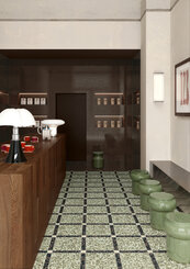 1970 a Milano. Un periodo di espansione industriale e rivoluzioni sociali. Luogo dell’Expo e casa/laboratorio di giovani icone della moda, la città inizia a consolidarsi come epicentro creativo e produttivo. Nuovi condomini rivestiti con i tipici effetti e formati. Portinerie futuristiche e moderne, oggi un po demode ma con ancora tante cose da dire. Milano 70 riprende proprio queste atmosfere, ritornando al tipico processo produttivo. Porcellanato realizzato in bicottura con smalti reagenti non applicati in digitale, che cambiano da pezzo a pezzo.