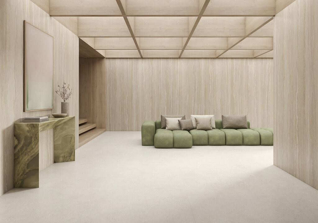 NAVONA si ispira al classico travertino italiano, offrendo una superficie elegante dai toni chiari e dalle venature morbide. Il suo design, equilibrato e omogeneo, permette di creare atmosfere luminose, armoniose e senza tempo. Grazie alla sua finitura opaca e alla sua versatilità, NAVONA si adatta perfettamente a progetti residenziali e commerciali.