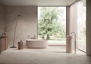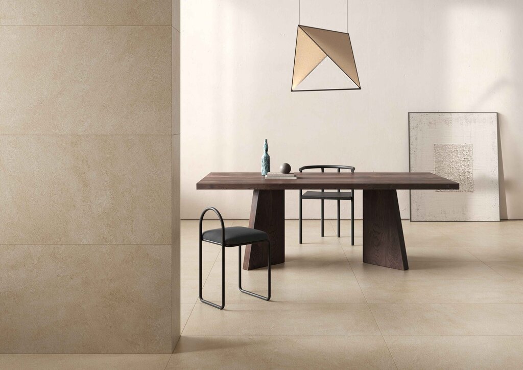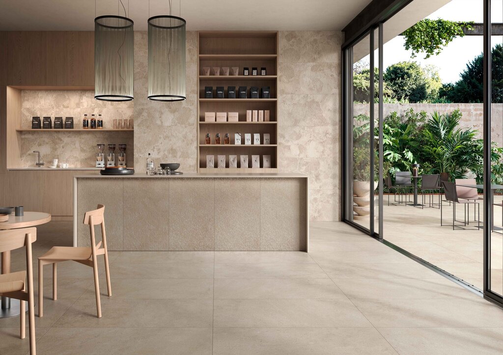 Lythos nasce come sintesi progettuale tra materia naturale e innovazione ceramica. Un sistema coerente di superfici che traduce in gres porcellanato il linguaggio autentico della pietra, fatto di stratificazioni che raccontano il tempo