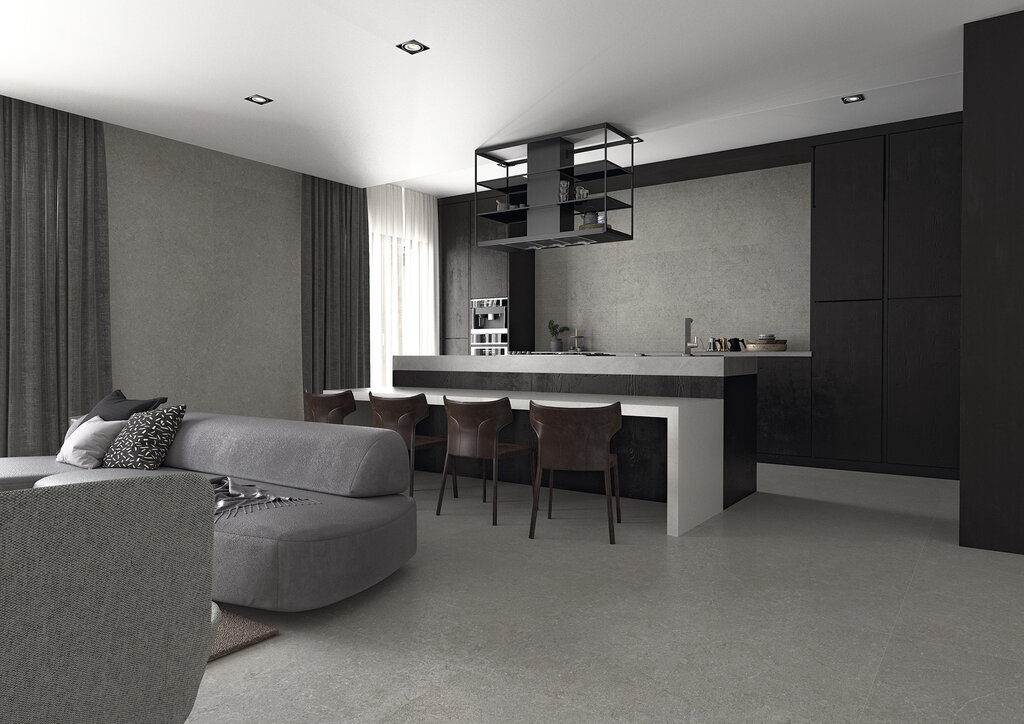 Mytos è la calma minerale della pietra trasformata in ceramica resistente, precisa e profondamente emozionante.