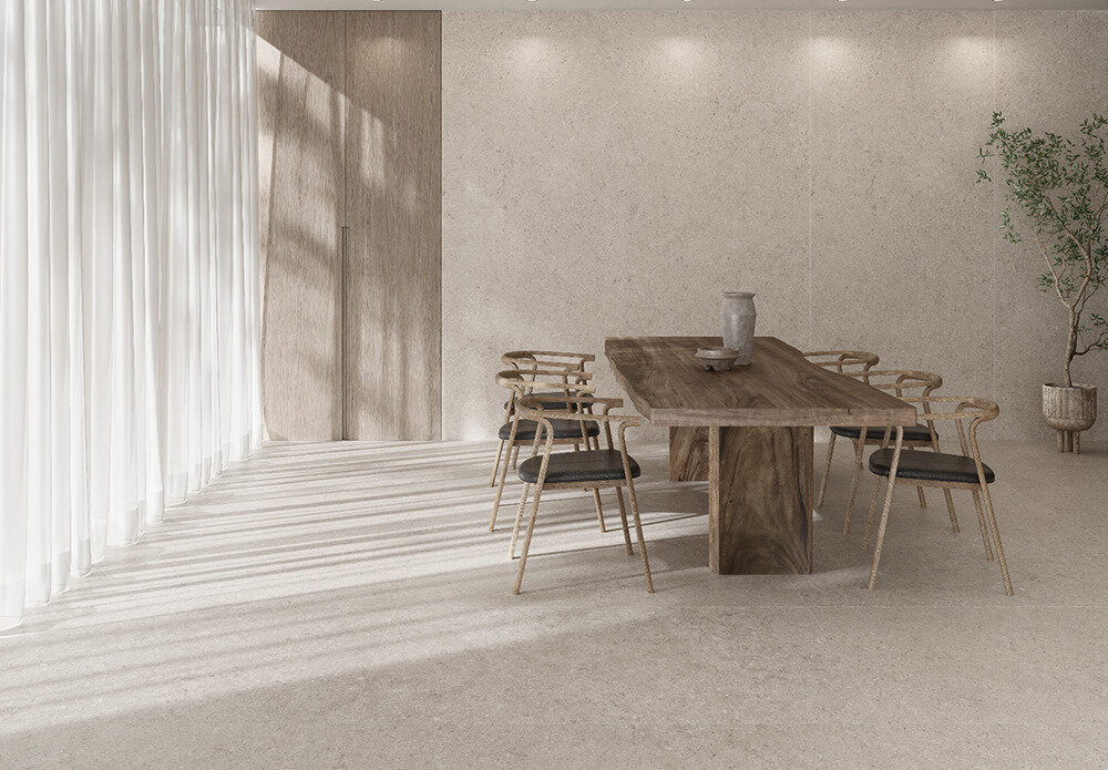 MERIDIA è una serie in pietra che combina naturalezza e tecnologia per creare spazi eleganti e senza tempo. Disponibile in tre colori nel formato 75×150 cm con finitura Artech, si distingue per la sua qualità e definizione grafica, ottenendo un'estetica sofisticata e realistica. La sua versione in lastra ceramica 120×280 cm amplia le possibilità di design, apportando continuità e ampiezza visiva.