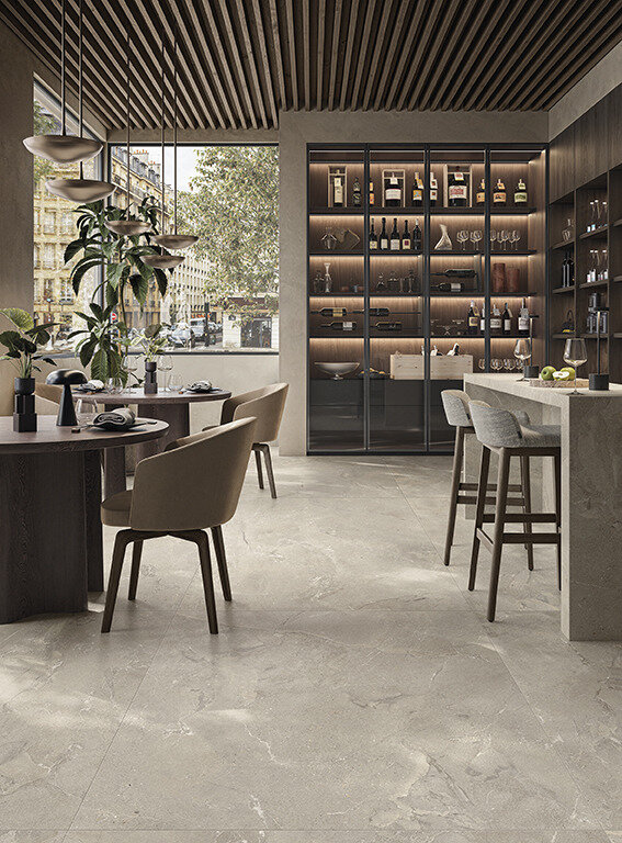 Revel è la nuova collezione effetto pietra firmata Panaria Ceramica. Una collezione nata dal desiderio di creare qualcosa di completamente nuovo: una materia sorprendente e vitale, capace di celebrare la natura e i suoi contrasti più emozionanti. Le sue quattro tonalità – Bright, Dune, Ground e Night – compongono una palette elegante e senza tempo, che dal bianco luminoso all’antracite intenso, passando per le raffinate sfumature del beige e del tortora, veste gli spazi con naturalezza e calore. Grazie a un’ampia gamma di formati e spessori – dalle lastre ultrasottili in gres laminato Zero.3 fino al 20 mm con finitura bocciardata – Revel si presenta come una proposta solida e versatile, perfetta per ambienti domestici e progetti architettonici di più ampio respiro, tanto indoor quanto outdoor.Dove la materia respira nasce eleganza in movimento: è questo lo spirito di Revel, che trasforma la forza autentica della pietra in superfici capaci di regalare dinamismo, armonia ed emozione agli spazi contemporanei.