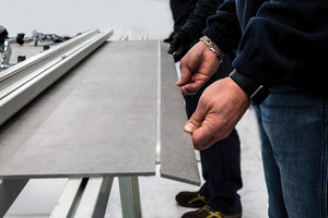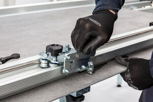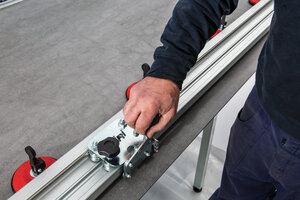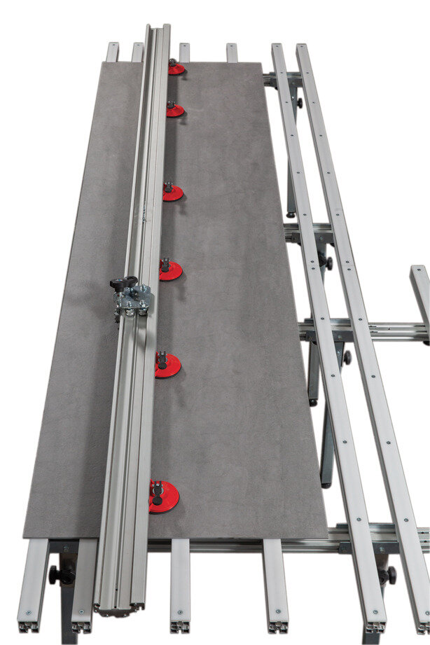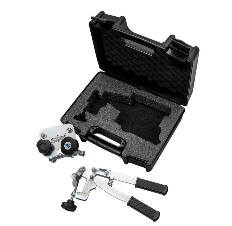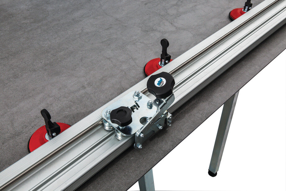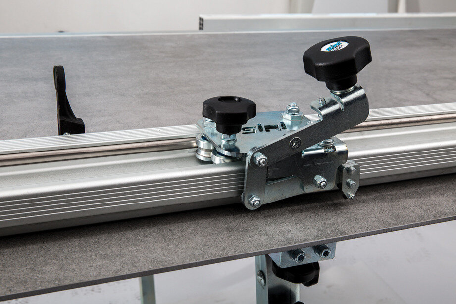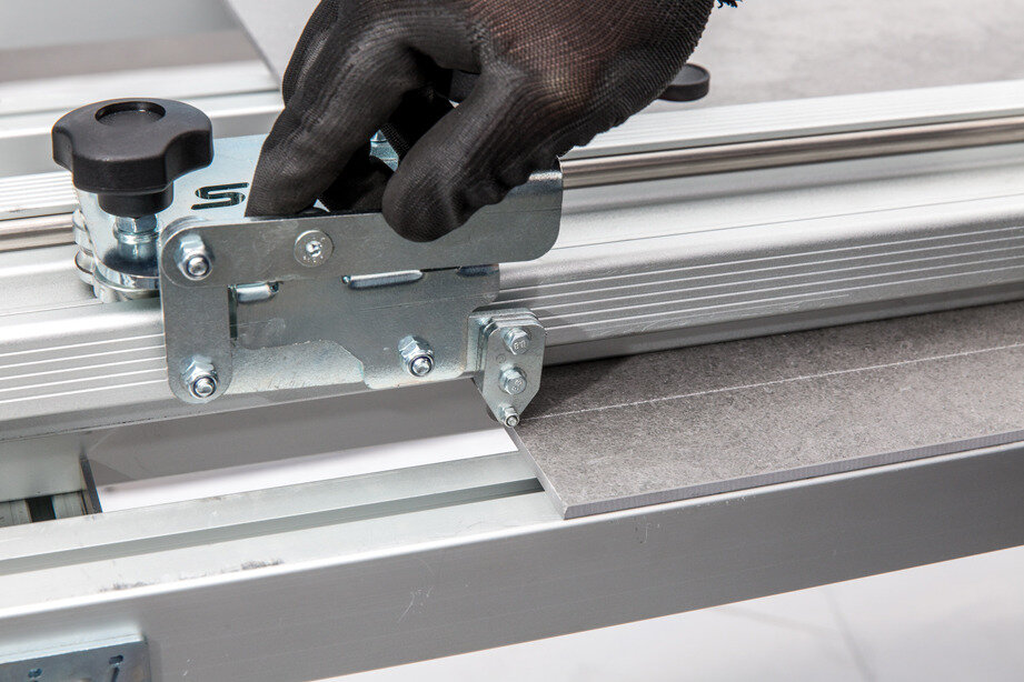 SIRI CUT 3 KIT è un sistema per il taglio di lastre di grande formato in ceramica e porcellanato. É composto da un carrello scorrevole con rotellina Ø 13 mm per l’incisione e da una pinza per separare. SIRI CUT 3 va utilizzato sulla guida Siri Guide 3 cm 330 inclusa. Grazie a quattro carrucole con cuscinetti a sfera, SIRI CUT 3 scorre facilmente sulle barre in acciaio delle guide. Esercitando una pressione con le mani sui pomelli si inciderà in modo profondo la piastrella, per poi effettuare la separazione facilmente, con la pinza in dotazione. La pinza é dotata di regolazione dello spessore fino a 10 mm.