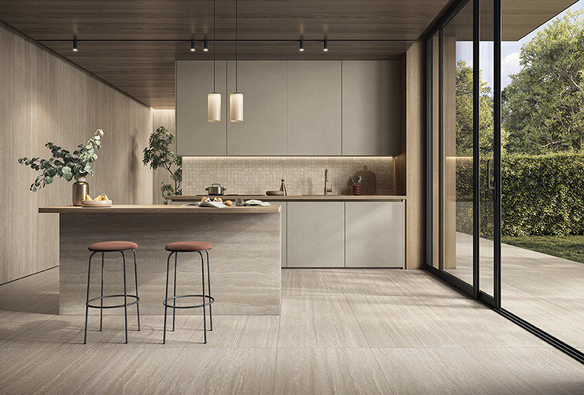 Perpetual Travertino amplia la collezione effetto marmo lanciata nel 2023, introducendo superfici dalla forte vocazione architettonica ispirate alla nobiltà del travertino vein cut. Texture profonde e sofisticate raccontano un’estetica intramontabile, riletta con un linguaggio visivo attuale, accogliente e ricco di personalità.